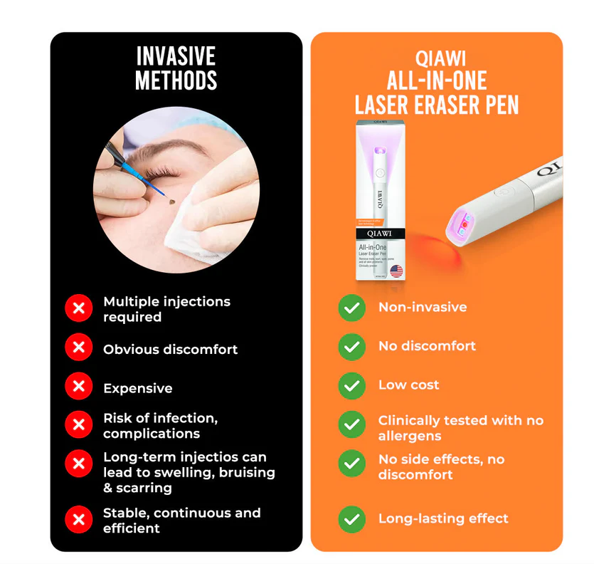 QIAWI™+ All-in-One Laser Eraser Penusesmedical-grade CO₂ laser technologyto remove moles, skin tags, warts, and pigmentation spots safely at home.