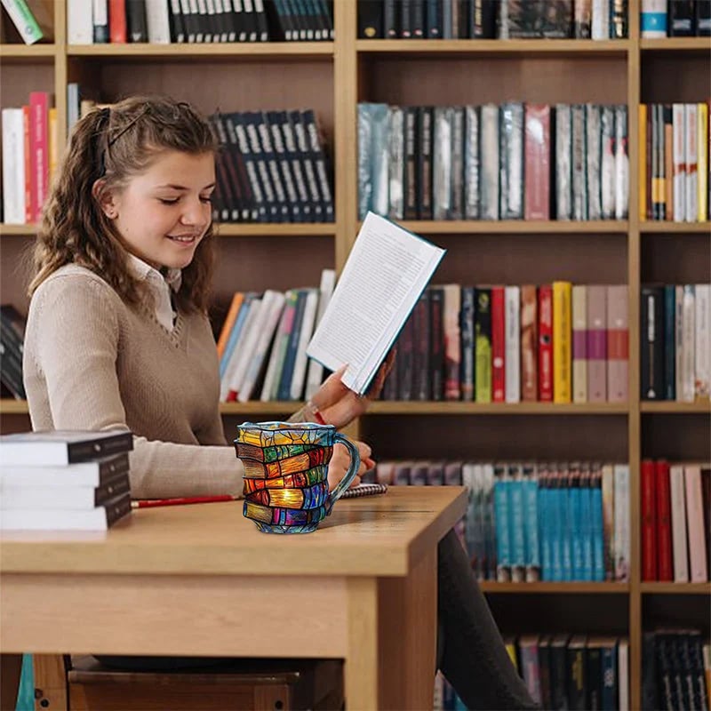 3D BOOK STACK DESIGN: A stunning mini-library art piece that doubles as a functional cup. The realistic stacked-book design adds a literary charm to your desk, shelf, or café.